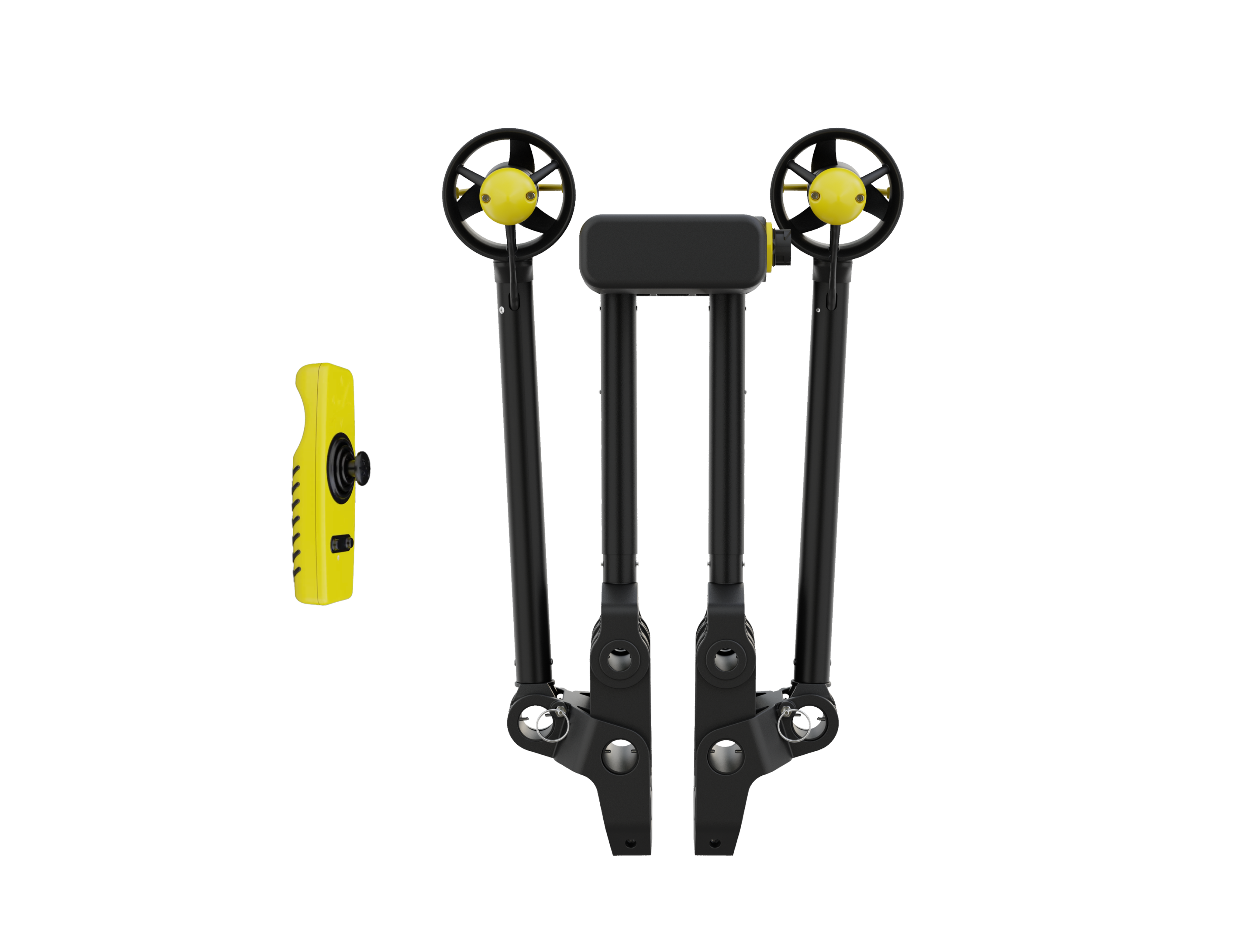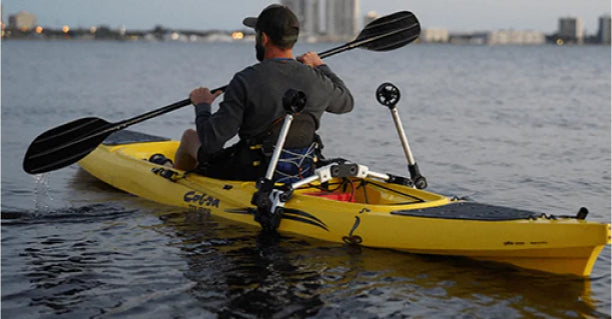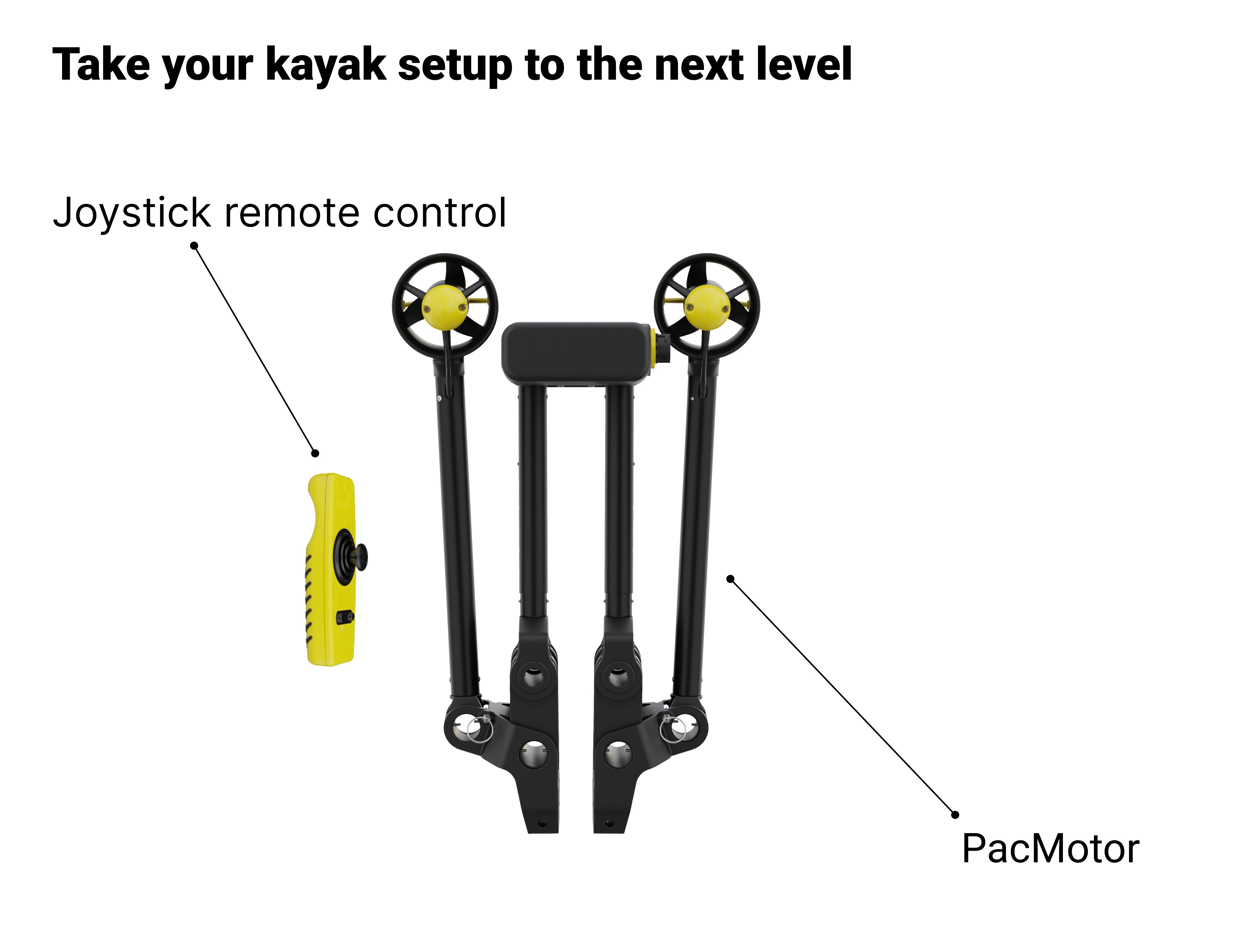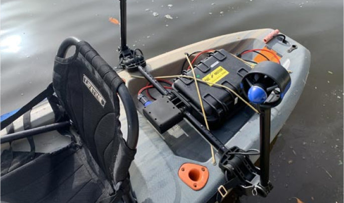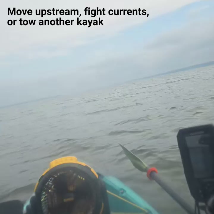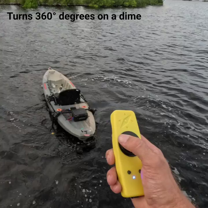 The first and only dual trolling motor on the market. It's a joystick-controlled system for effortless kayaking in fresh and salt water.